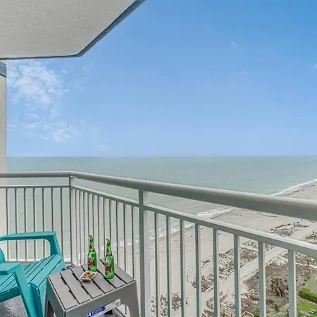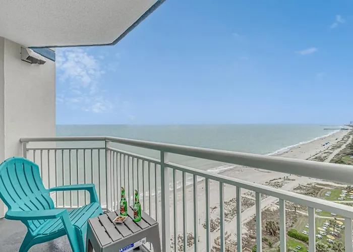 Guests can enjoy a seaside sea view from a patio at the beachfront Del Mar By Staymareni - Oceanfront 2Br-2Ba Myrtle Beach villa, 3.4 km from the seasonal Myrtle Waves Water Park.